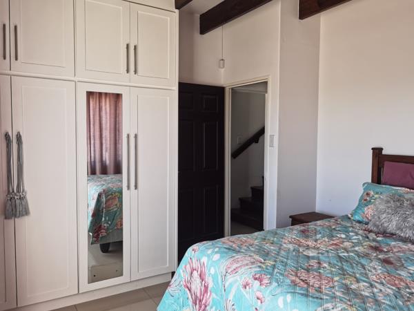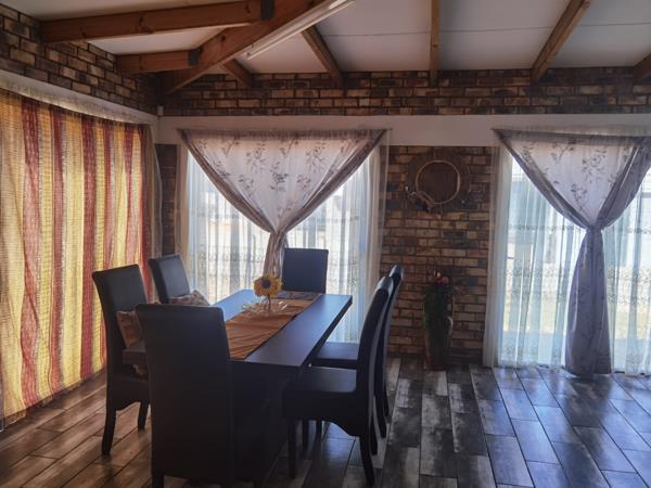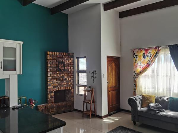 Enjoy open-plan living with a spacious kitchen boasting ample cupboards, seamlessly flowing into the living area with a cozy fireplace- ideal for relaxing evenings. An addition entertainment room includes a built-in braai, perfect for hosting friends and family.