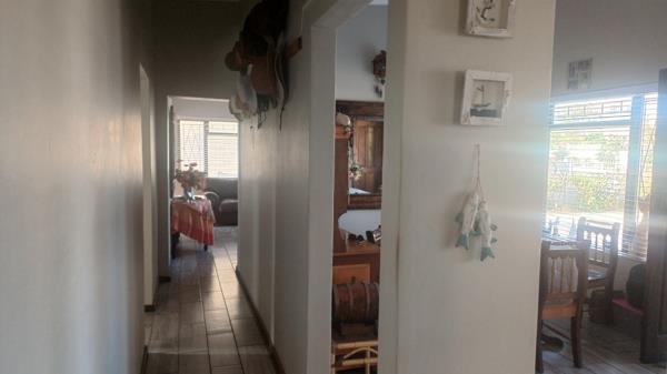 The lounge is tucked away at the back of the house, creating a cozy and private space. It opens onto a welcoming stoep with a built-in braai, where you can entertain guests while enjoying the cool sea breezes and a lovely ocean view. The main bedroom features a private en-suite, while a second bathroom services the two other bedrooms, making this the perfect home for a family or for hosting friends.