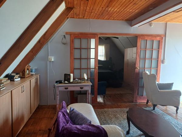 Ground Floor: Two additional bedrooms share a bathroom with a bath. The open-plan lounge and kitchen area includes a built-in braai, perfect for cozy gatherings.