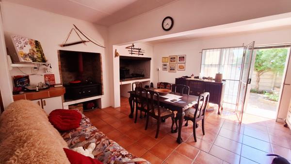 Step into a welcoming entrance hall leading to an open-plan living and dining area, complete with a built-in indoor braai and a coal stove, perfect for cozy West Coast evenings.