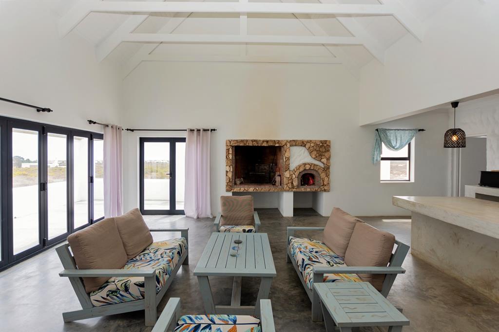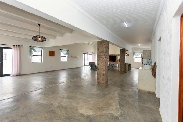 This exceptional smallholding in Jacobsbaai offers sweeping ocean views across the town and coastline, with space, privacy and flexibility thats rare to find this close to the sea. The home is designed in a distinctive U-shape, creating a private central courtyard and wraparound veranda that every room opens onto, filling the house with natural light and a relaxed indoor-outdoor feel.