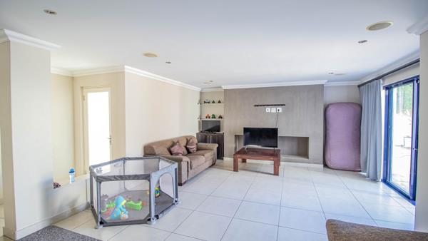 Outside, a built-in braai area overlooks the sparkling swimming pool and beautifully maintained garden. The property is fully walled, providing both privacy and security.