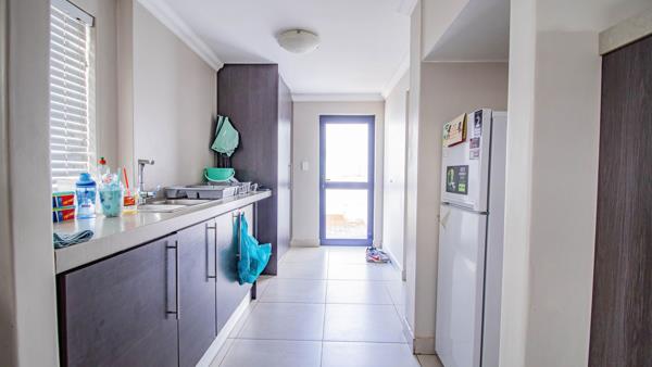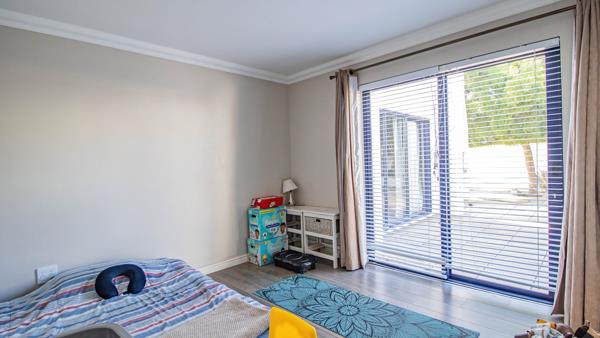 The lower-level features two spacious bedrooms with laminated flooring and two bathrooms, one of which is en-suite. The comfortable lounge and dining area flows seamlessly into the modern open-plan kitchen, complemented by a separate scullery for added convenience. There is also a study, perfect for working from home.