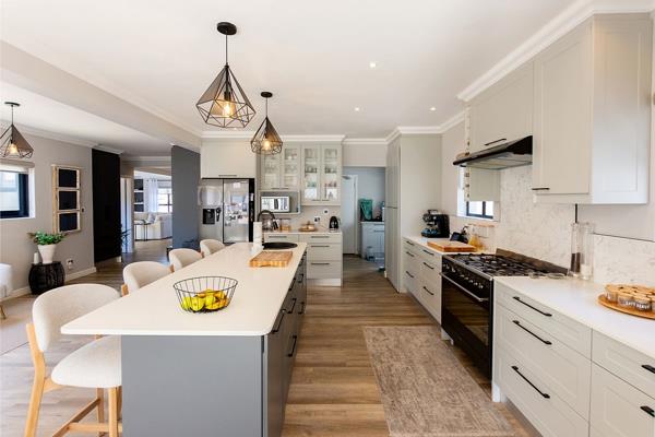Upon entering, you are greeted by a welcoming family lounge that flows effortlessly into the open-plan kitchen, dining, and indoor braai area. The kitchen is both functional and sophisticated, featuring a spacious separate scullery with direct access to the garage. Expansive stacker doors open the entertainment area to the back patio, fostering a harmonious connection between indoor and outdoor spaces. Throughout the home, premium vinyl flooring provides a timeless aesthetic and low-maintenance ease.
