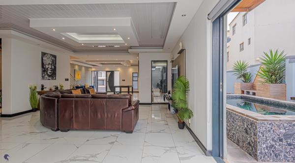 From the moment you walk through the grand glass doors, youre greeted by a striking staircase and a bright, open layout that invites you to explore further. The ground floor is all about effortless flow and entertainment: spacious living and dining zones connect to a sleek indoor braai room, complete with stacking doors and windows that open out to a tranquil courtyard. Here, you''ll find a hot tub perfect for unwinding, and a quirky 2-hole mini golf course that adds a playful twist to the outdoor space.
