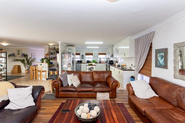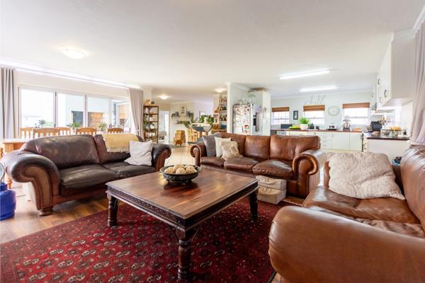 The open-plan living area leads to a sheltered patio with views of the Langebaan Lagoon and a built-in braaiperfect for relaxing or entertaining all year round.
