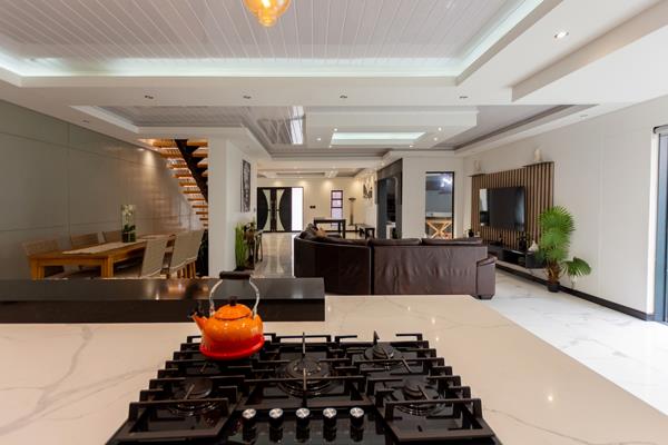 Upstairs, four en-suite bedrooms offer privacy and style, with the main suite opening onto a balcony that captures calming ocean and sunset views. A versatile additional room can be used as a study or extra bedroom, while a cozy lounge area with a coffee station adds a touch of luxury to the upper level.
