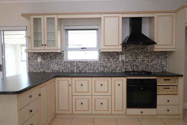 The open-plan kitchen, dining and living area flows into the enclosed braai room, fitted with both a wood braai and a gas braai perfect for year-round entertaining. Large sliding doors open to the spacious backyard, creating a seamless indoor-outdoor experience. The kitchen includes a scullery, keeping the main space clean and functional.