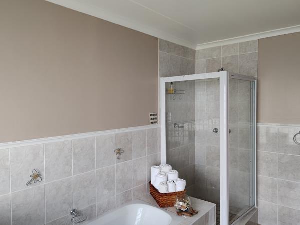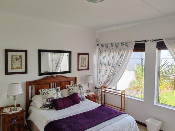 There are two open plan kitchens, both with a dining area. Kitchen, one leads on to the lounge entering the enclosed balcony with braai through big sliding doors. Kitchen two has a built-in braai with sliding doors leading on to a patio overlooking the Golf course.
