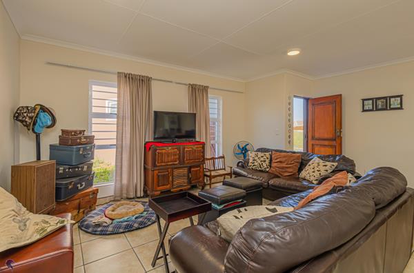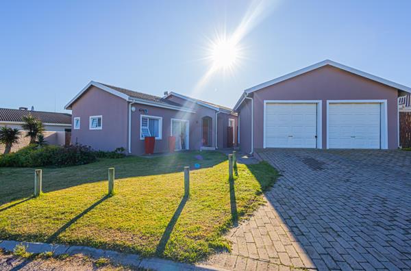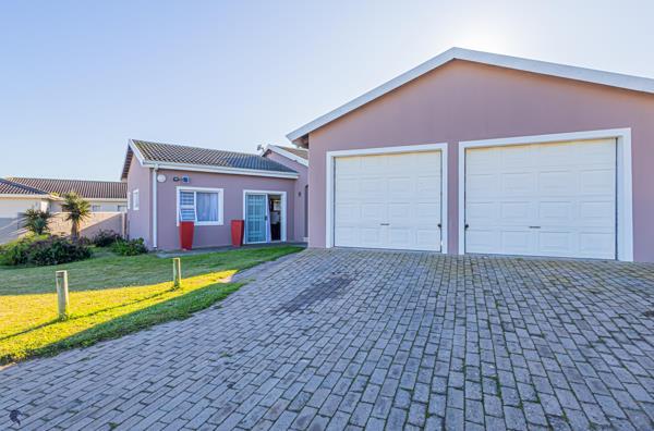 Outside, the property features a generous garden, a small covered patio with a built-in braai, and a double garage.