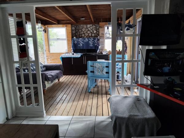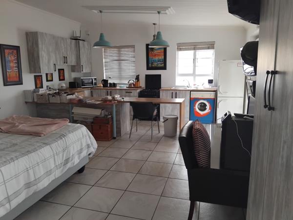 The large lounge area features a built-in indoor braai barbeque, ideal for year-round entertaining, regardless of the weather.