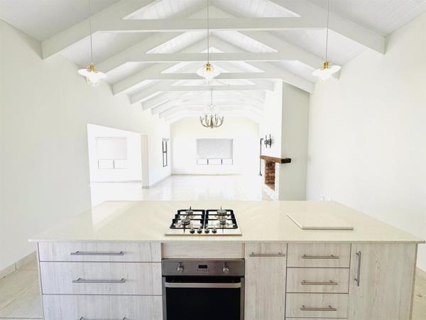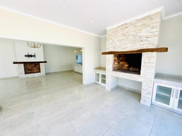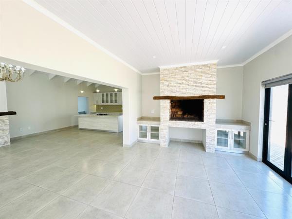 High ceilings with exposed, white-washed trusses create an airy, open atmosphere, complemented by a seamless flow throughout the living areas. The inviting lounge features a cozy fireplace, while the contemporary open-plan kitchen allows you to prepare meals without missing out on family time. A built-in BBQ room extends from the kitchen and lounge, making it the perfect space for entertaining.