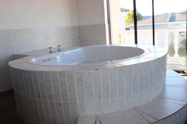 This large double storey home has a lot to offer. Upon entering the house via the foyer, the open plan lounge, dining room, braai area and kitchen with its ample cupboards and pantry welcome you. These areas are tiled. The bonus is the Welcome dover stove that can be utilized for heating or just plain cooking and baking. The main bedroom is carpeted, has a full an-suite and also a separate room with a jacuzzi and sliding doors that leads to an outside patio. The 2 remaining rooms are carpeted and have BICs. The family bathroom has a bath, basin and toilet. A separate toilet for guests is as usual, very needy. A door next to the pantry gives direct access to a double automated garage. Outside behind gates is a Wendy house that can be utilized as a store room or work room.