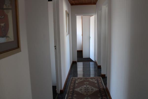 Going to the upper level via a wooden staircase, lit by a modern set of lights, you will find a large open area with wood crafted floors. This will be the entertainers dream. Two sets of sliding doors lead to a patio the same volume as the patio on ground level which has an undercover built-in stainless-steel braai. Partial see views are available from here. The garden is established and in front of the garage is a double carport, all under paving.