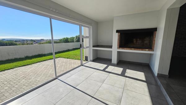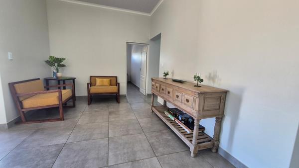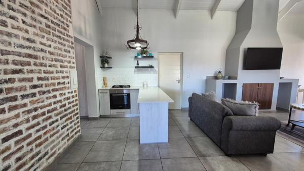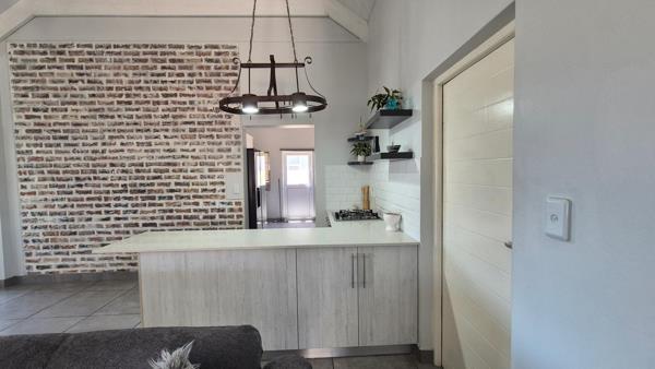 Step into a spacious open-plan living area that seamlessly connects to an indoor braai rooma perfect setting for entertaining guests or cozy family nights. A charming fireplace adds warmth and ambiance, making winter days extra special. The kitchen has modern finishes with a gas hob and electric oven, a convenient laundry room, scullery and access to the courtyard.