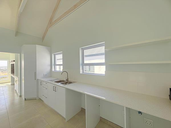 Upper Level, the heart of the home unfolds upstairs , a space designed for easy entertaining and relaxed family living. A double volume and exposed trusses ceiling, large windows, and a bright open layout fill this home with natural light and a welcoming feeling , with an indoor braai area, open-plan lounge extending to a private back patio for seamless indoor-outdoor flow.