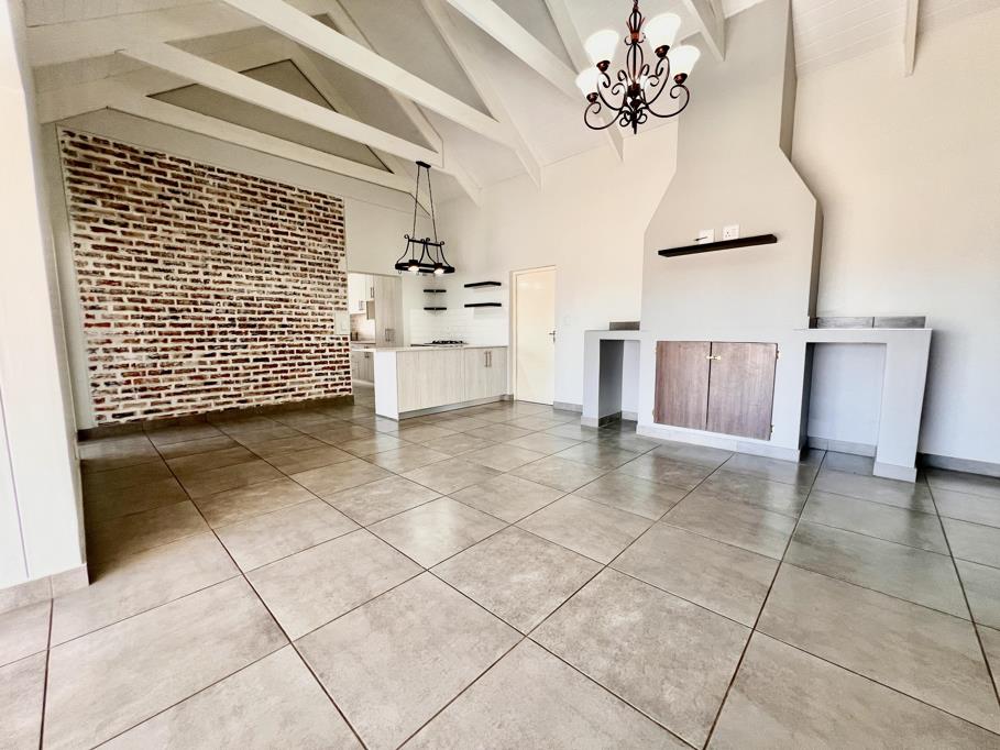 Inside, the open-plan design with vaulted ceilings makes everything feel bright and airy. Theres a cozy fireplace in the living room for those chilly evenings and a modern kitchen with a super cool exposed brick wall. Plus, the separate scullery keeps things nice and tidy. Hosting braais is a breeze with the built-in indoor braaiperfect for any weather.