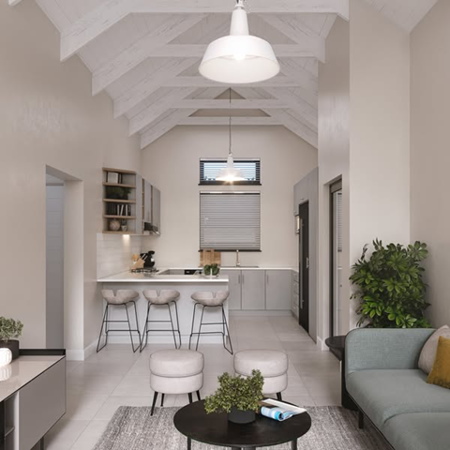 This beautifully designed 3-bedroom home is located in the sought-after Spartikus Lifestyle Estate in Laguna, Langebaan just 800 meters from the beach and close to top amenities like Curro School, Laguna Mall, medical facilities, and Club Mykonos. The home features spacious open-plan living areas with high truss ceilings, creating an airy and welcoming atmosphere. The living area includes a built-in braai, perfect for entertaining, and sliding doors that open onto a patio for seamless indoor-outdoor living. The stylish kitchen offers ample workspace and flows into a separate scullery for added convenience. The main bedroom is privately positioned with its own en-suite bathroom, while the two additional bedrooms share a modern family bathroom. A double garage with direct access into the house completes this well-planned layout, offering security and ease of living.
