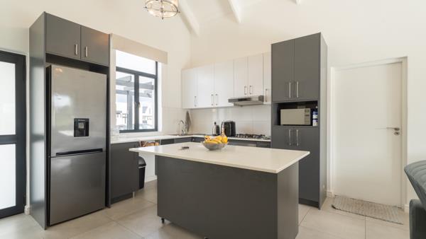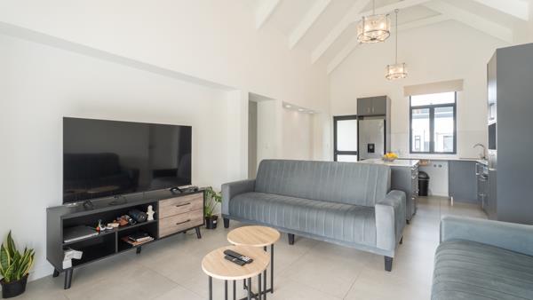 The spacious master bedroom, complete with a private en-suite, invites rest and retreat. Two additional bedrooms share a full family bathroom ideal for guests, family, or creating a work-from-home space. The open-plan kitchen and living area is the heart of the home modern, well-appointed, and designed to flow effortlessly onto a covered stoep with a built-in braai. Here, every meal, conversation, and quiet moment finds its place.