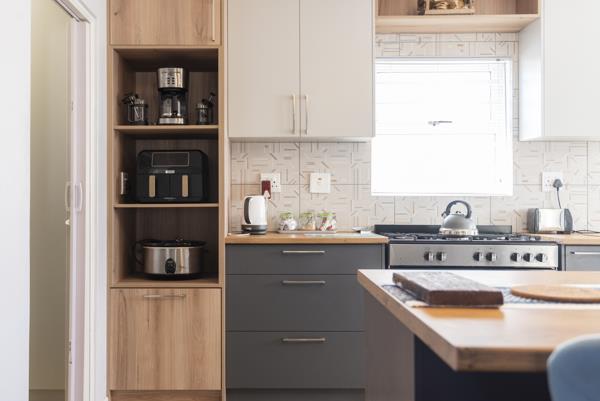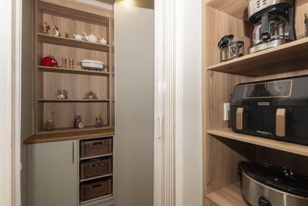 The Chefs Zone: Equipped with a high-quality Defy stove gas hob and electric oven and a convenient counter for casual family meals. Practicality is ensured with a coveted walk-in pantry and a separate scullery.