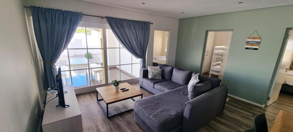The open-plan living areas are undoubtedly conducive to family gatherings and entertaining, providing ample space for interaction and relaxation. The downstairs patio, equipped with a built-in braai, offers the perfect setting for outdoor dining and socializing, extending the living space seamlessly into the outdoors.