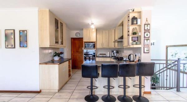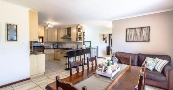 Step into a warm and welcoming reception area that seamlessly flows into a spacious formal lounge, complete with a built-in braai. The lounge opens onto a large balcony offering spectacular views of the lagoon and lush greenbelt the ideal space for entertaining or relaxing. Being north-facing, the home enjoys plenty of natural sunlight, making it especially comfortable during the winter months.