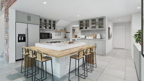 and a stylish braai room with built-in braai and cupboardsideal for hosting family and friends.