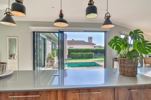Modern golf estate retreat with exceptional golf course views. Step into style and serenity with this beautifully appointed home set in a prime position on the estate, boasting breathtaking views of the green belt and manicured golf course. Designed for relaxed living and effortless entertaining, the open-plan layout flows seamlessly from the sleek modern kitchen through expansive living and dining areas, all framed by large windows that invite the natural beauty indoors.