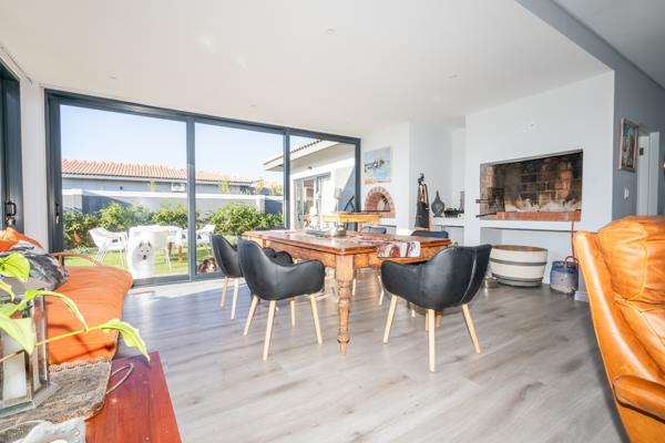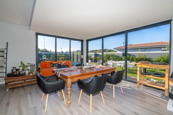 This immaculate 4-bedroom family home offers the perfect blend of luxury, comfort, and functionality. Designed for effortless entertaining, the spacious open-plan living area with a built-in braai and pizza oven and flows seamlessly onto a patioideal for relaxed family gatherings. Large sliding doors open up to a beautifully landscaped, irrigated garden and sparkling swimming pool, creating a serene indoor-outdoor lifestyle.