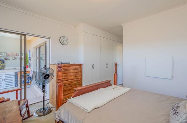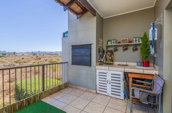 The enclosed balcony is sheltered from the wind and is north facing, giving great light into the apartment from the afternoon sun. This is a perfect spot for the Langebaan sunsets with your favourite drink and meal.
