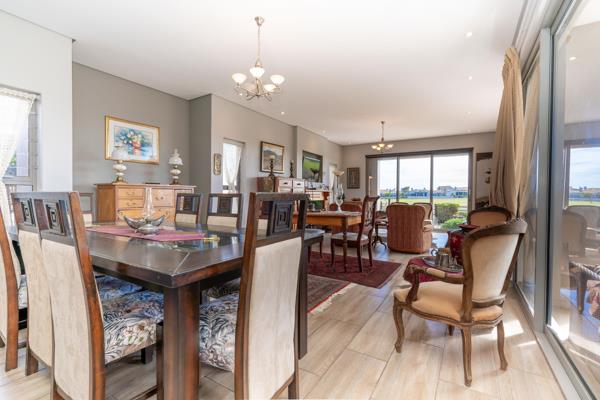 Discover elevated living in this sophisticated double-storey residence, ideally located in a quiet cul-de-sac within the prestigious Langebaan Country Estate. Designed for comfort and versatility, this home boasts uninterrupted views of the golf course and is bordered by tranquil greenbelts, offering exceptional privacy and natural beauty.