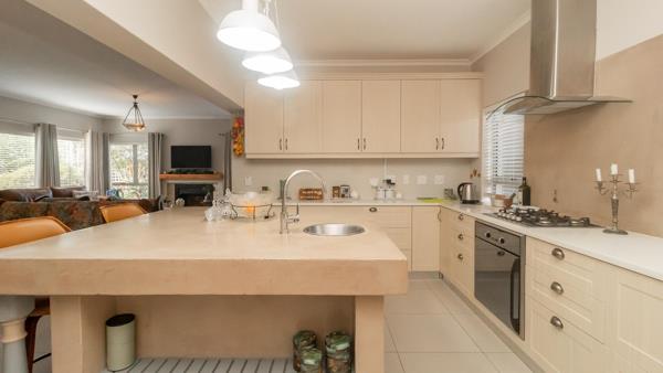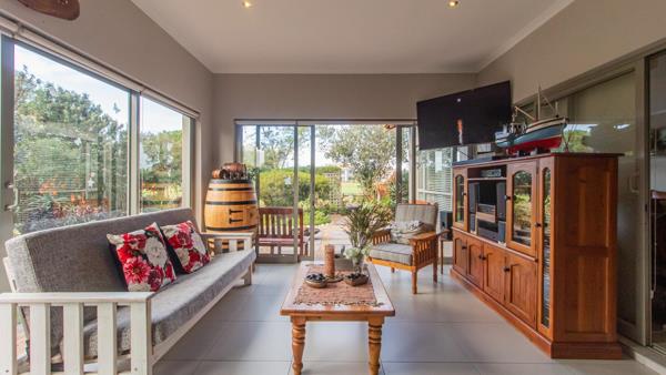 With a view of the 2nd fairway on the desirable Clubhouse side of Langebaan Country Estate, this elegant single-storey home offers spacious, light-filled open-plan living and dining areas with a cozy fireplace and seamless flow to a braai room. A private gate offers direct access to the fairway, perfect for golf lovers and nature enthusiasts alike.