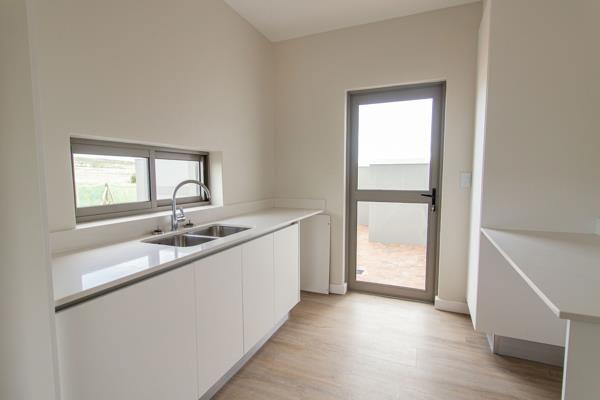 Step inside and be prepared to be enchanted by the grandeur that unfolds. The expansive open-plan living spaces creates an airy and welcoming atmosphere. The interior design is a symphony of contemporary elegance, with top-of-the-line finishes, designer fixtures, and bespoke details throughout. To compliment the living space on the ground floor is an extra-length garage, guest toilet, wind-protected patio with a built-in braai that overlooks a lovely landscaped garden.