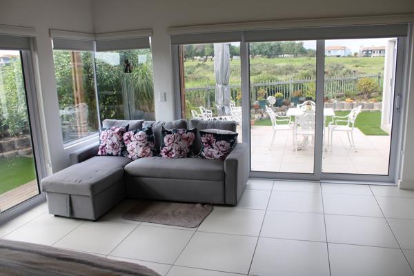 This beautifully designed 4-bedroom home is perfectly positioned near the 13th hole of the prestigious Langebaan Country Estate. As you step through the front door, you are welcomed by a sense of space and light, thanks to the large double-glazed windows that flood the home with natural sunlight and offer picturesque views of the surrounding greenery. The open-plan layout offers a seamless flow from the dining area to the well-appointed kitchen, featuring ample cupboard space, generous worktops, a dedicated space for a double-door fridge, and a separate scullery with plumbing for both a dishwasher and washing machine. The lounge, fitted with a cozy fireplace, opens onto the garden through stacking doors perfect for relaxed family living. A spacious braai room with sliding doors leads to a patio and a lush garden that overlooks the golf course, where springboks often roam peacefully. All four bedrooms have more than the usual built-in cupboards. The main bedroom and second bedroom each boast a full en-suite bathroom, while the remaining two bedrooms share a modern family bathroom. A large study is conveniently located near the bedrooms, ideal for working from home. There''s also a guest loo for the convenience of visitors, as well as a kiddies'' den to keep the little ones entertained.