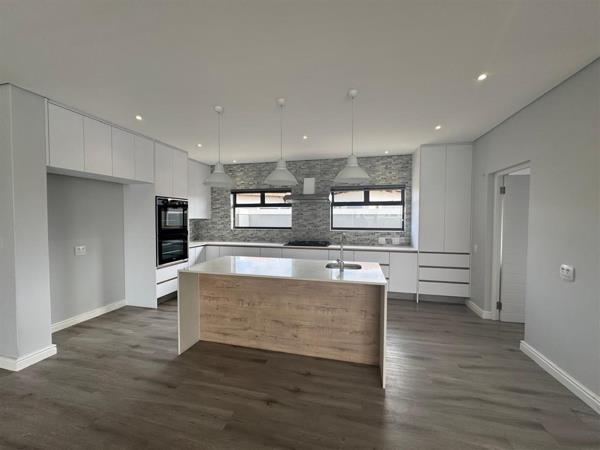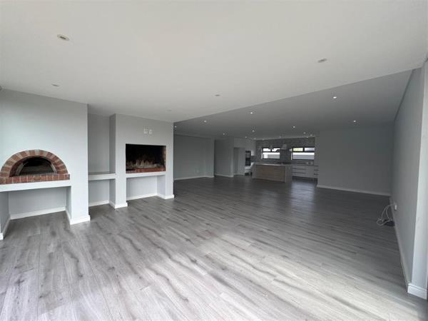 The heart of the home is the modern open-plan kitchen, seamlessly flowing into the living and dining areas. Perfect for entertainers, this space includes an indoor braai and pizza oven, ensuring memorable gatherings with family and friends. A separate, spacious scullery and a guest loo add convenience.