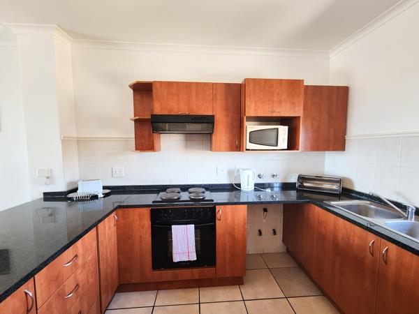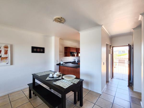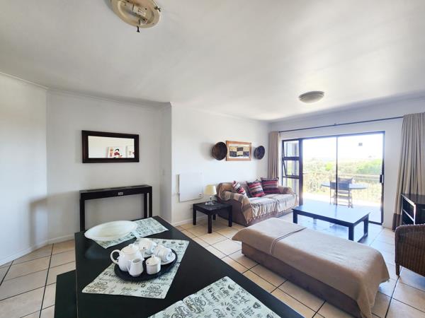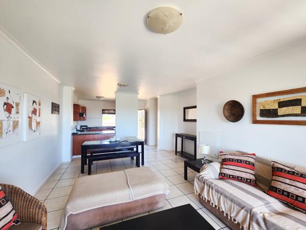 The apartment opens into a bright, open-plan lounge and dining area that flows onto a balcony with tranquil views of the Langebaan Lagoon an ideal spot to relax with your morning coffee or watch the sun set over the water.