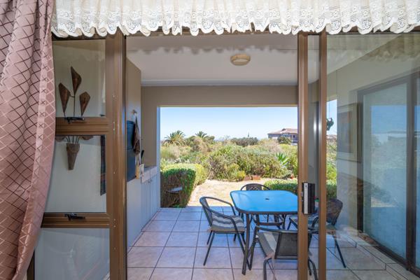 As you step into this well-kept apartment you are immediately greeted by an open and airy living space that seamlessly blends with the outdoors. The living room boasts ample space for a dining room table as well as a lounge set and flows onto a covered wind-protected patio with built in braai and lagoon views. The open plan kitchen forms part of this living space with two water points for appliances.