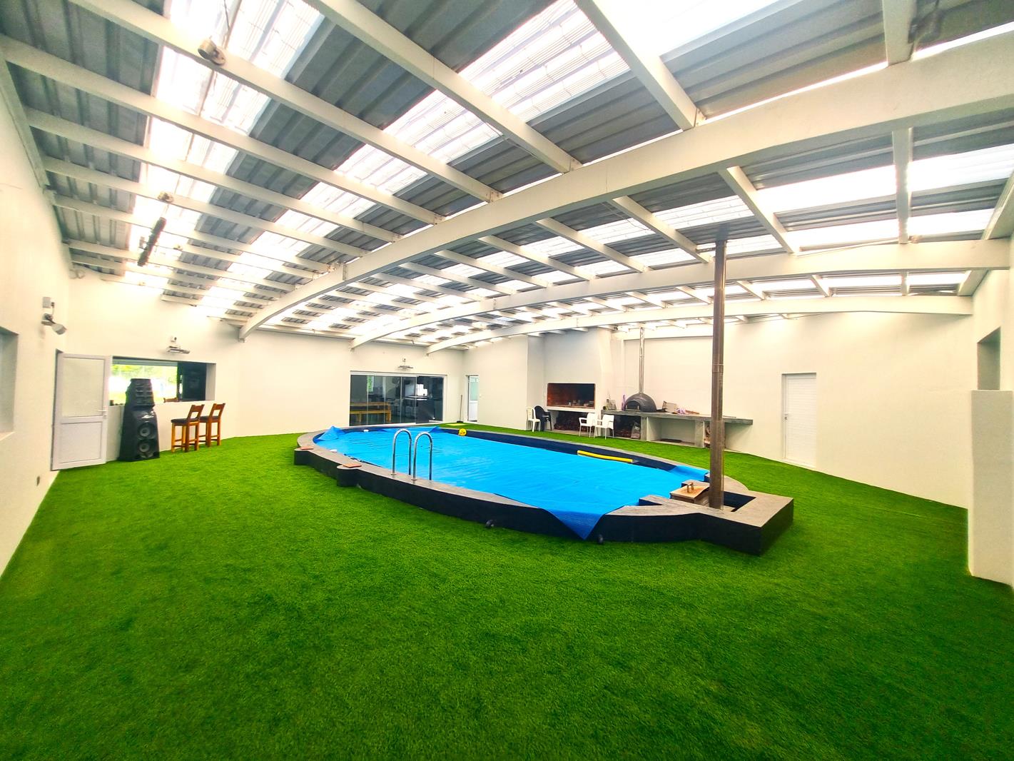 The leisure room of this home, which includes an indoor heated pool, is one of its most notable features. All year long, you can unwind and swim while taking advantage of the ease of this luxury feature. With a built-in braai and pizza oven next to the pool, you can easily host parties and savour delectable meals. Furthermore, this section is conveniently home to a guest bathroom.