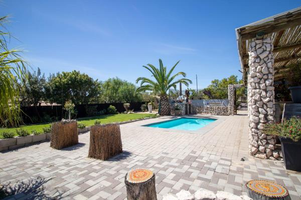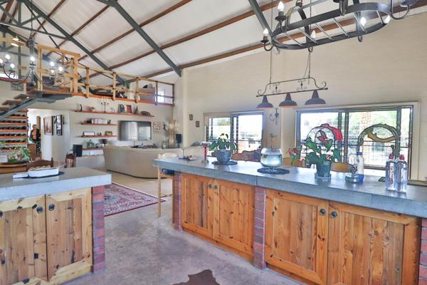 The home has 3 spacious bedrooms with 2 bathrooms. The large main bedroom has a walk-in closet and full bathroom. Large inviting open plan living and dining area with a high vaulted ceiling. a Rustic kitchen with concrete cupboards and a separate scullery and pantry. The home also boasts lots of secure parking and 3 large garages a carports for your boat etc. The water tanks 30 000l is plenty for the garden and potential veggie patch.