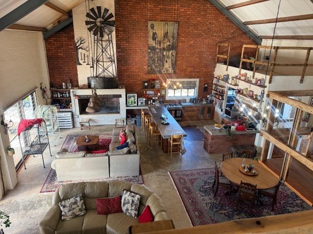 As you enter, youre greeted by soaring double-volume ceilings and warm screed floors that add a grounded elegance throughout. The home flows seamlessly with a beautiful country-meets-contemporary layout from a cosy TV lounge, braai room, and living area that opens effortlessly through stacking doors to a covered patio with exposed wooden beams. Perfect for sunset cocktails, lazy brunches, or simply soaking up the panoramic views over the lush garden and sparkling swimming pool.