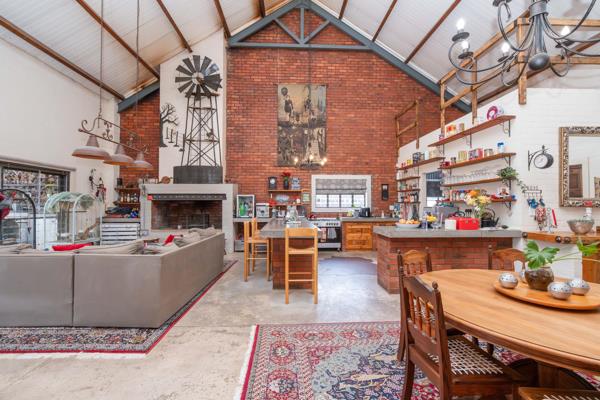 - Soaring double-volume ceilings with exposed wooden beams create a grand sense of space. An abundance of natural light pours in through large windows.