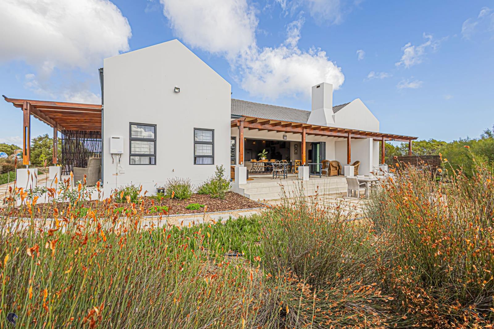 Surrounded by landscaped gardens that blend effortlessly with indigenous fynbos, the property features meandering walking paths and secluded outdoor retreats, inviting peaceful moments in nature and barefoot luxury.