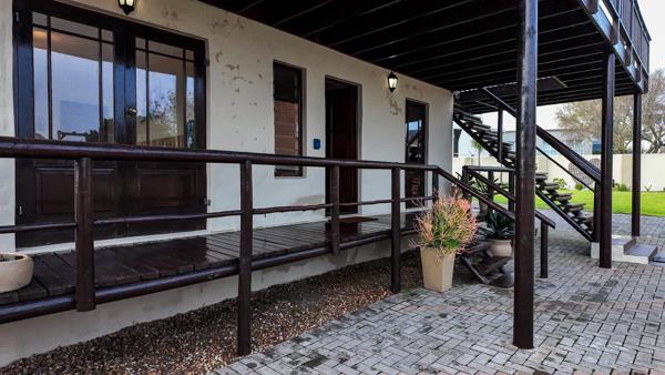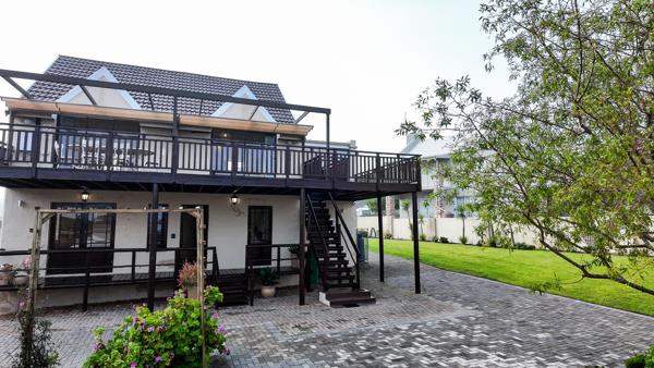 The open-plan kitchen, living, and dining area is thoughtfully designed for comfort and entertainment. It boasts a built-in braai (barbecue) and a deck with breathtaking lagoon views.