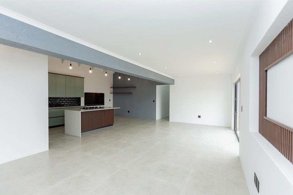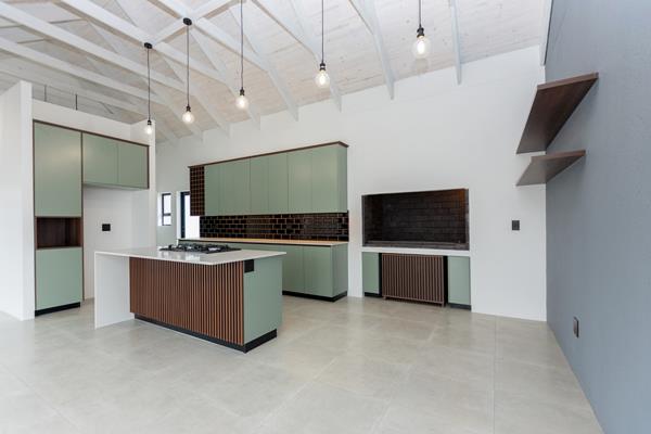 This modern home features a spacious open-plan layout, tiled throughout for a clean and seamless flow. The living area is light and inviting, complemented by an indoor braai that makes entertaining effortless all year round. The kitchen is well-appointed with a Defy stove and oven, offering practicality and style, while a gas geyser ensures energy-efficient living.