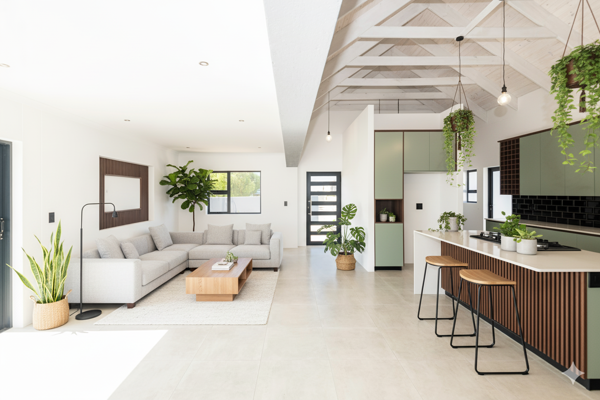 Open-Plan Living Area flowing into a fully fitted kitchen