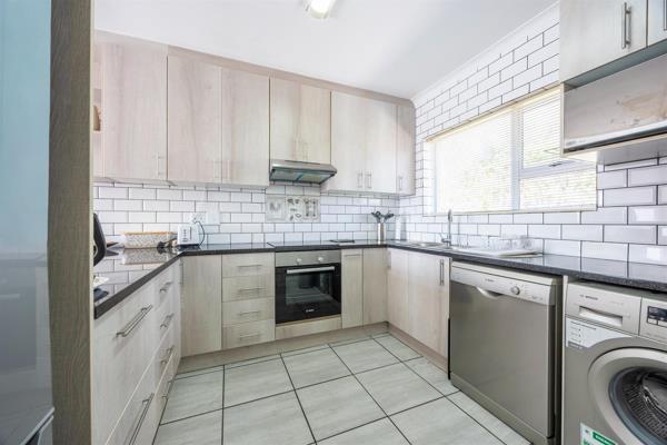 The kitchen boasts a modern design with a built-in basin and plenty of cupboard space, making meal preparation a breeze. Appliances are all included.