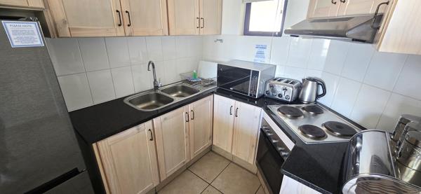 Balcony overlooking the sparkling pool Built in Braai