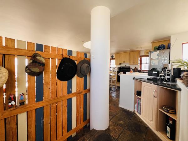 Head upstairs and youre greeted with a bright, open-plan living space. On one side, theres a well-equipped kitchen with loads of cupboards and a built-in braai. On the other, a cozy lounge with a fireplace for those wintery nights. Step out onto the big patio, take in the sea breeze, and enjoy that amazing view morning coffee just got an upgrade.