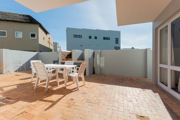 The layout is simple and functional. Downstairs youll find a spacious open-plan lounge and dining area with a built-in braai that leads out via a well-appointed cascading door to a private, fully paved courtyard with a built-in braai perfect for entertaining or relaxing in the sun. The kitchen includes a double sink, extractor fan, and a scullery with laundry area. Its clean and practical, and ready for a modern refresh if you choose. A guest toilet and handy storeroom are also located on the ground floor.