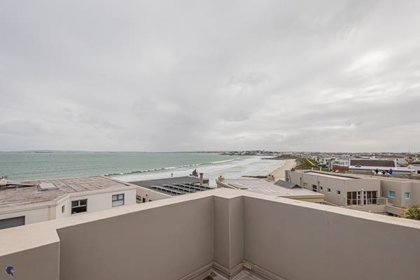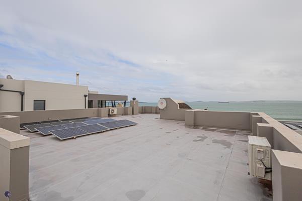 Designed for comfortable family living, the main residence spans two levels. The middle level features two spacious bedrooms, a full family bathroom, and a private study perfect for working from home. Upstairs, the expansive open-plan living area includes a stylish lounge, dining space, and a fully fitted kitchen with separate scullery. The enclosed braai stoep is a true highlight, offering showstopping views across the bay. The master suite on this level boasts a walk-in closet and modern en-suite, while external stairs lead up to a rooftop terrace with panoramic sea views.